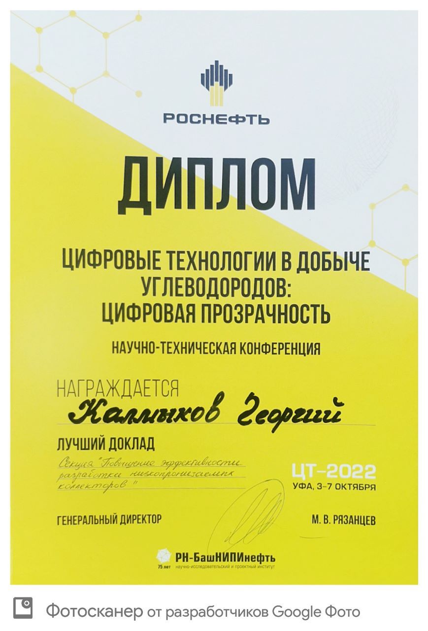 Доклад стал лучшим на секции «Повышение эффективности разработки низкопроницаемых коллекторов»