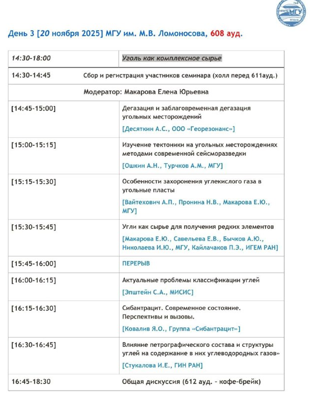 ✔️Научно-практический семинар нацелен на объединение специалистов нового поколения – геологов, физиков, химиков, работающих в разных сферах изучения и применения угля.